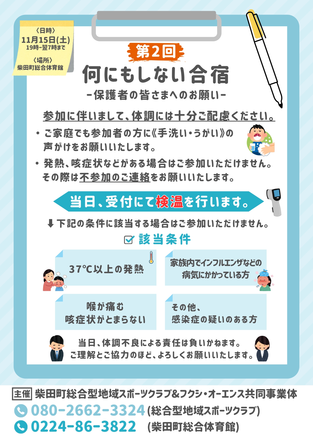 11月15日(土)に開催の『何にもしない合宿』にご参加予定の保護者の皆さまへお願いです✨