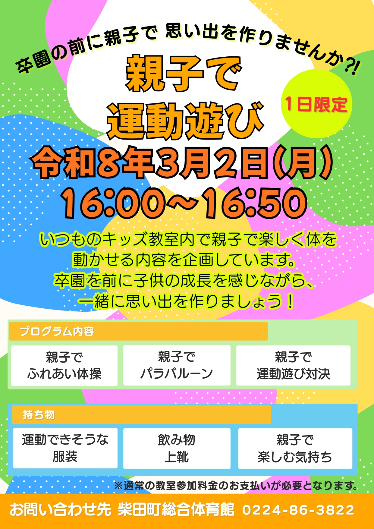 3月2日 キッズ体育教室『親子で運動あそび』に関するお知らせ